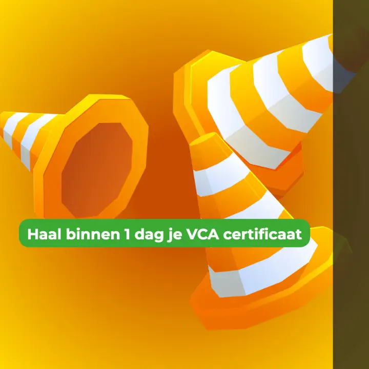 Get your VCA certificate in just one day! Available daily in Schiedam and Barendrecht, from 9:30 to 16:30 with exams at 17:00.